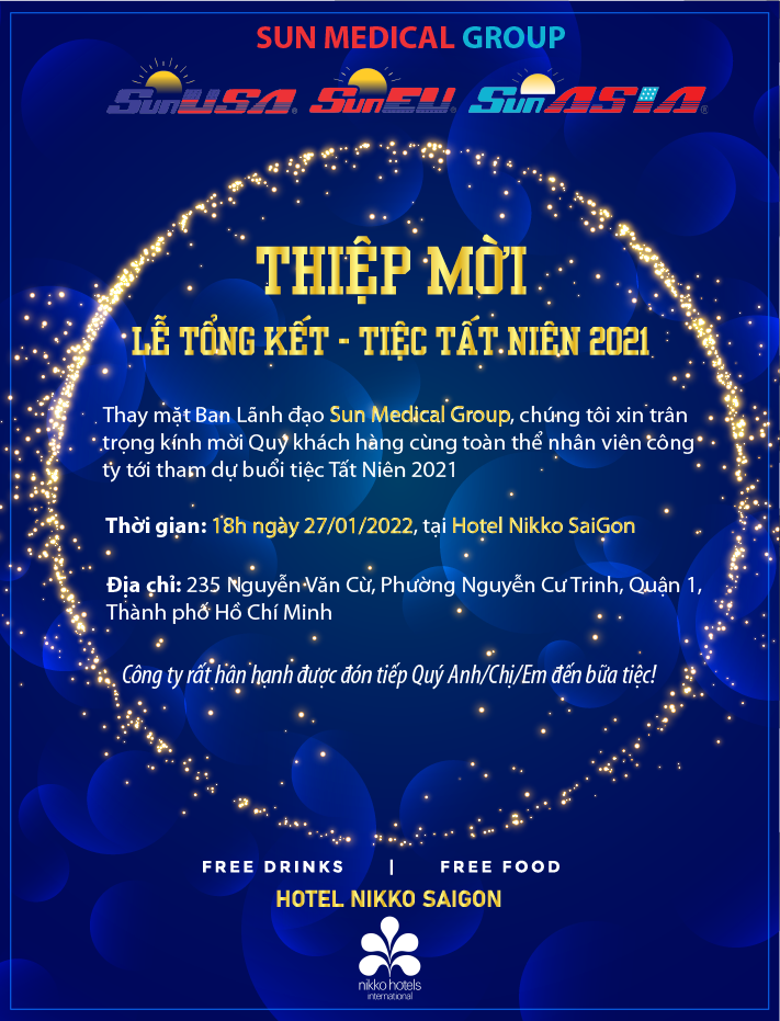 Lời đầu tiên xin thay mặt Ban lãnh đạo Sun Medical Group trân trọng gửi tới Quý Khách hàng và Quý Anh/Chị/Em nhân viên một năm mới nhiều " SỨC KHỎE - MAY MẮN - AN KHANG - THÀNH CÔNG".