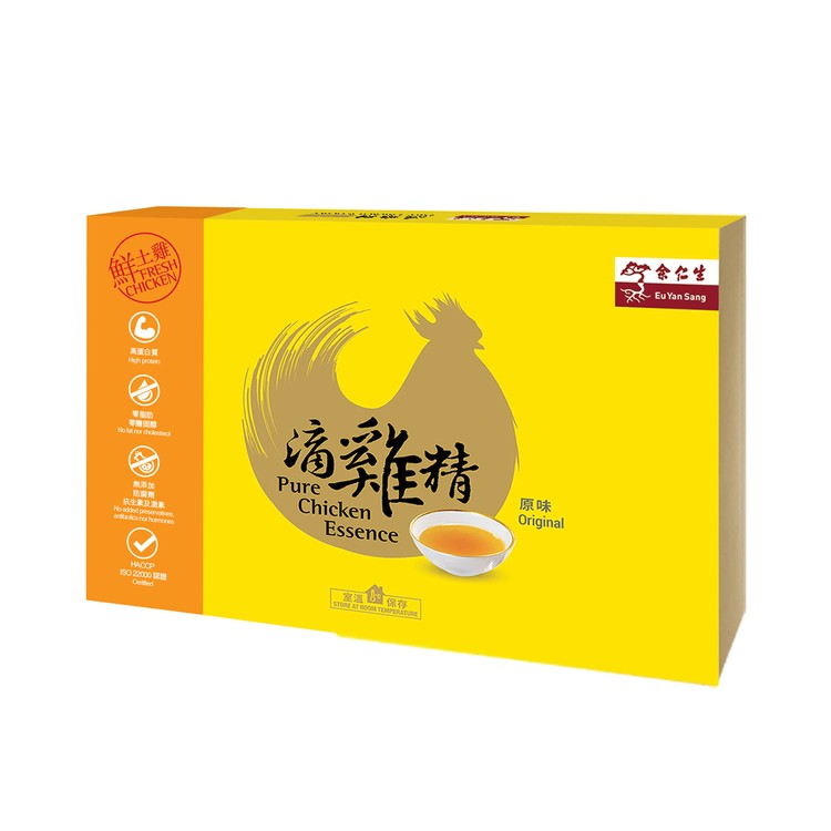 Phong tục Trung Quốc tin rằng thịt gà tươi là món ăn bổ sung chất bổ lý tưởng nhất, mà thịt gà đông lạnh hoặc ướp lạnh không thể so sánh được. Eu Yan Sang Pure Chicken Essence được làm từ gà tươi. Được chế biến trong vòng 30 phút trước khi hầm để giữ được các chất dinh dưỡng ban đầu của gà tươi không bị mất nước trong quá trình cấp đông và rã đông. Thịt gà chứa nhiều protein và 18 loại axit amin.