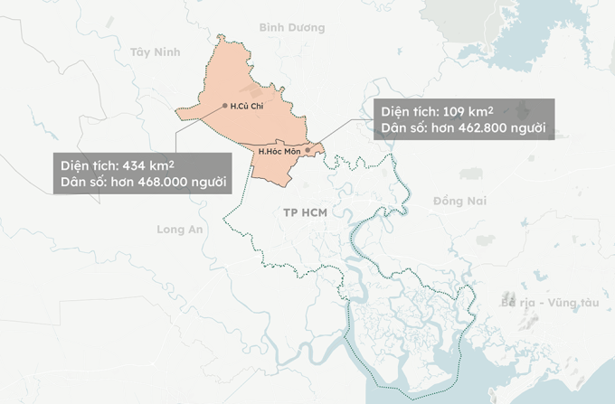 Vị trí của huyện Củ Chi và Hóc Môn Đồ hoạ: Khánh Hoàng