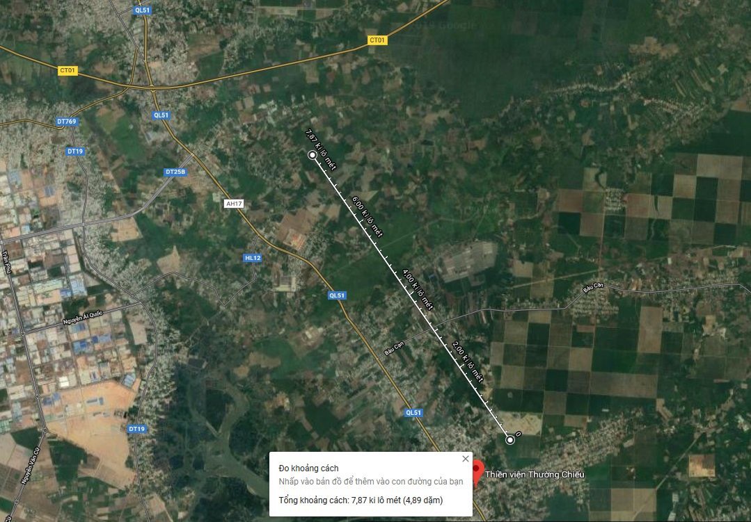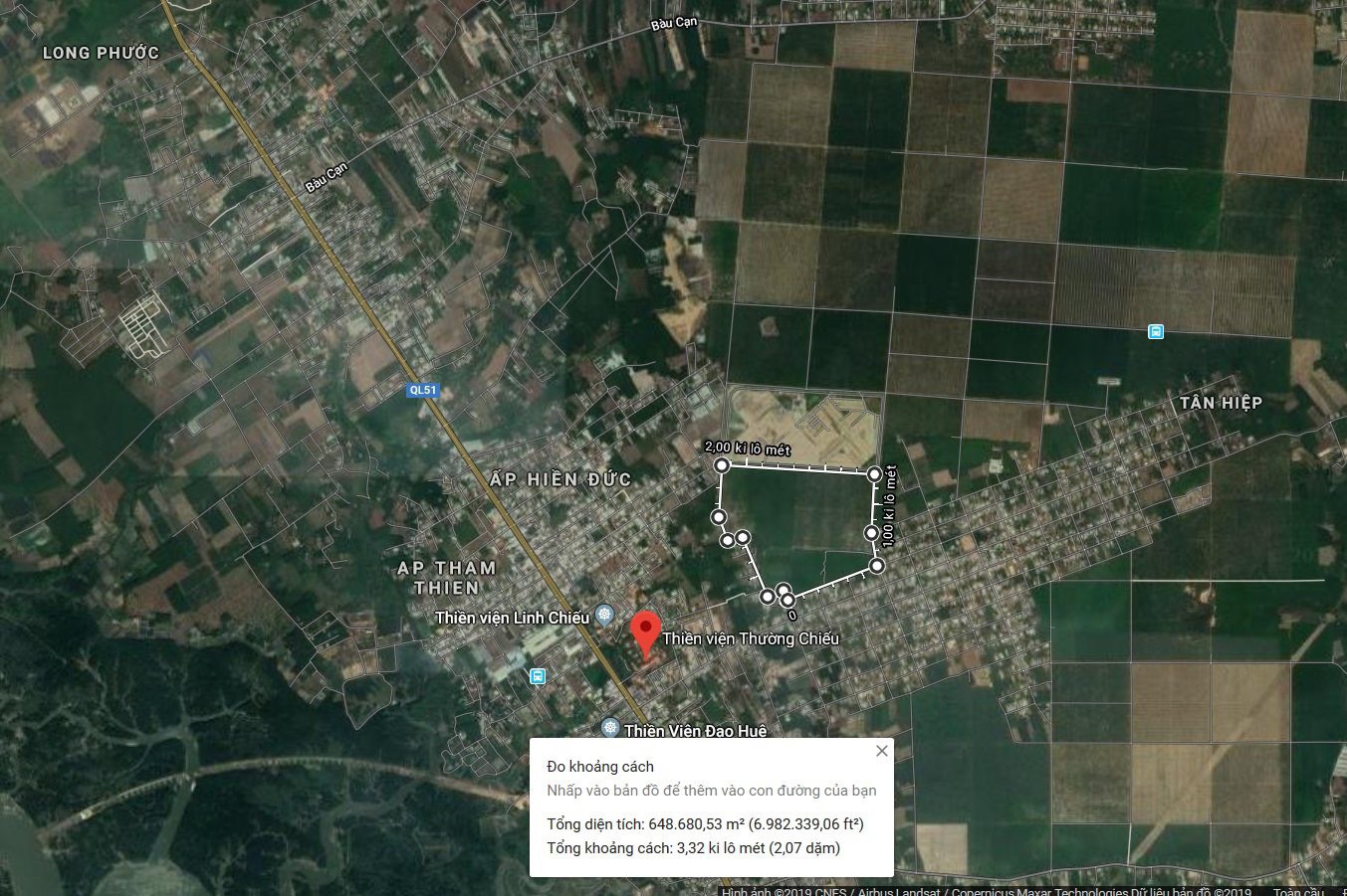 - Google maps: cách sân bay Long Thành 5 Km theo trục Quốc lộ 51