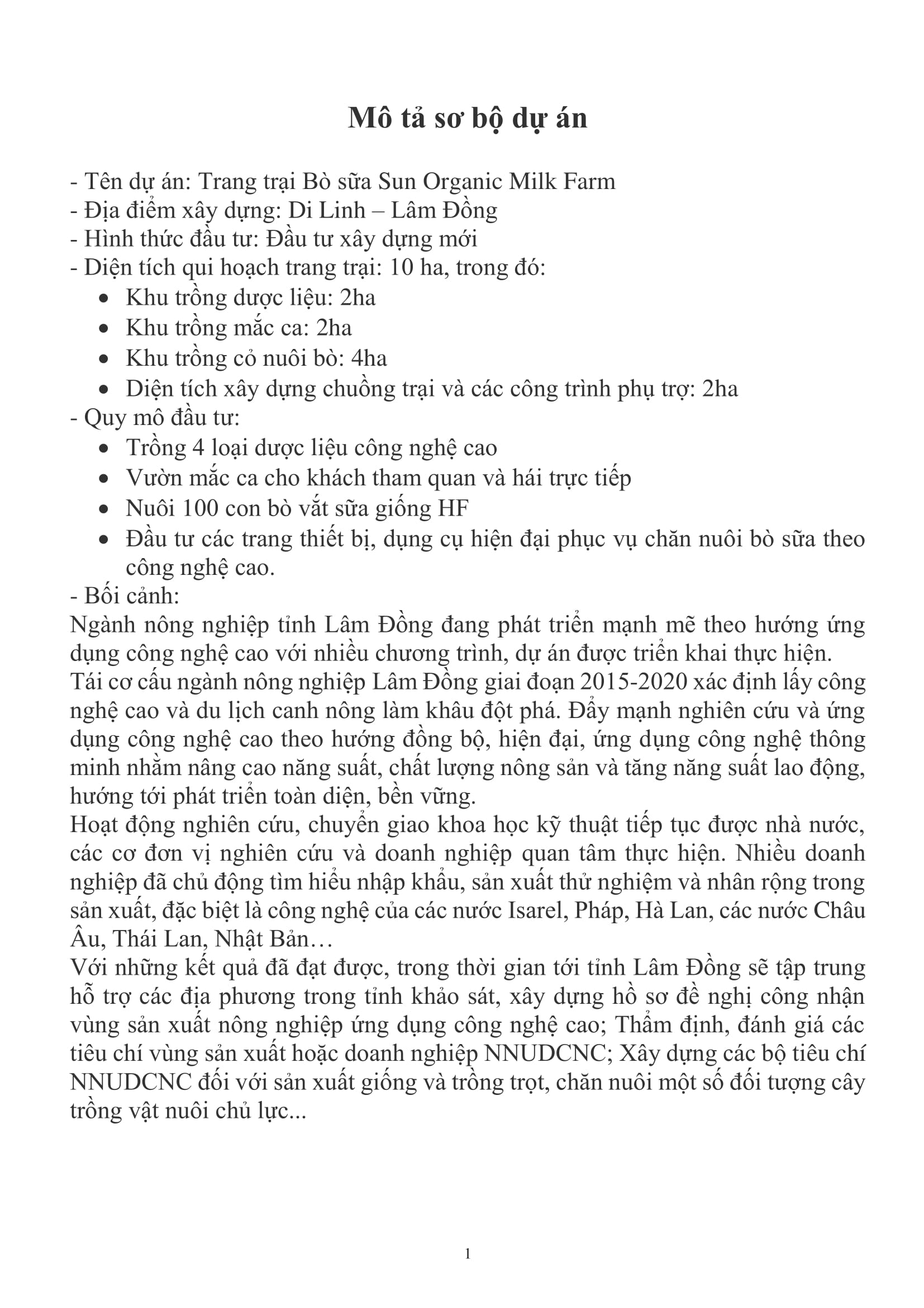 - Tên dự án: Trang trại Bò sữa Sun Organic Milk Farm