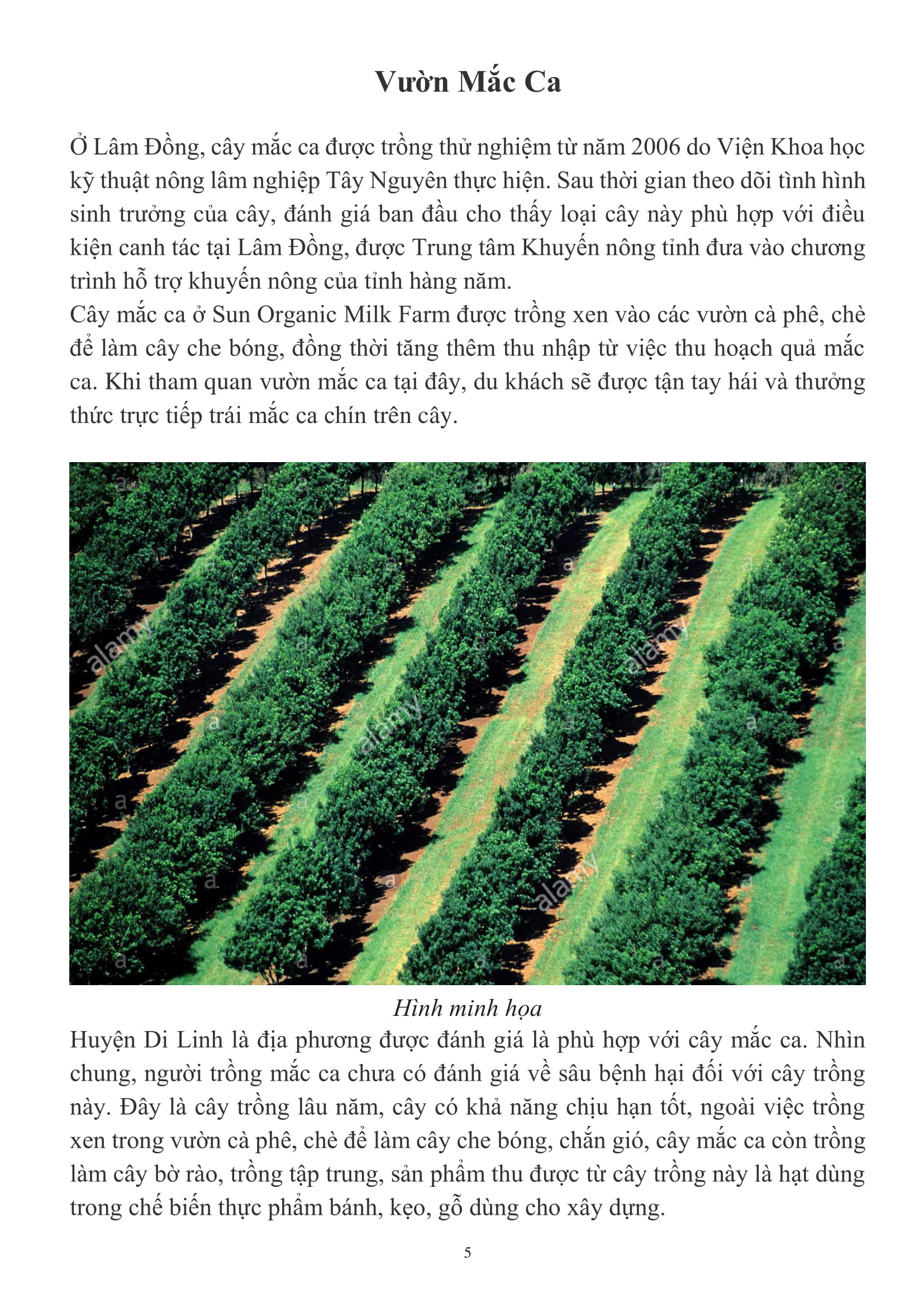 • Vườn mắc ca cho khách tham quan và hái trực tiếp