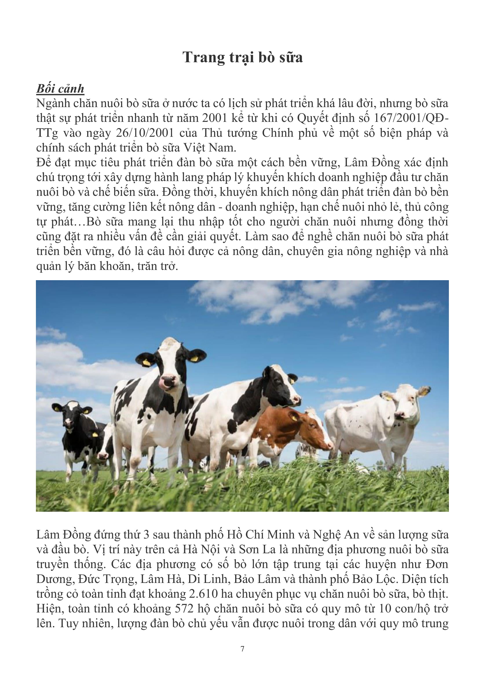 • Đầu tư các trang thiết bị, dụng cụ hiện đại phục vụ chăn nuôi bò sữa theo công nghệ cao.