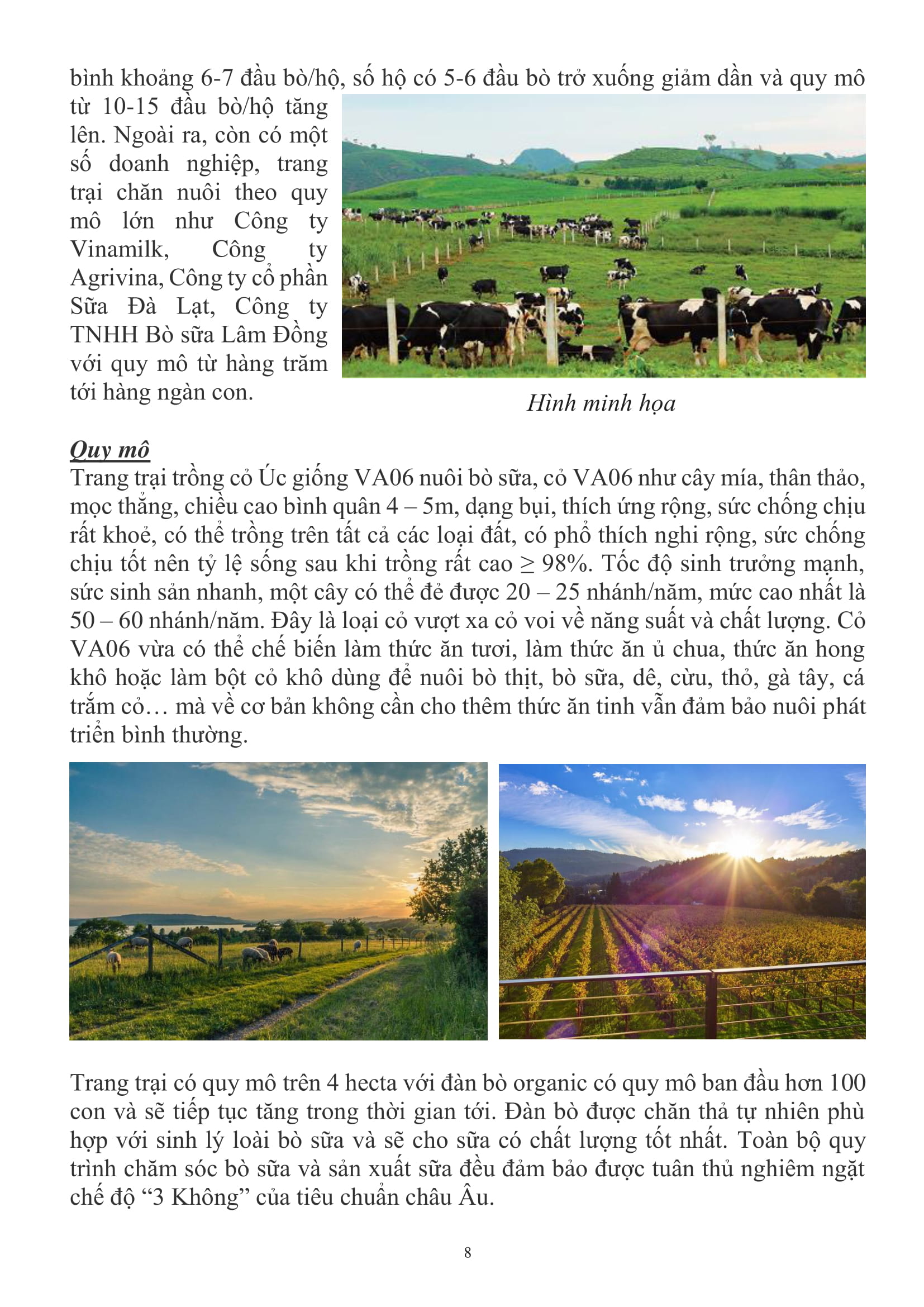 • Khu trồng cỏ nuôi bò: 4ha